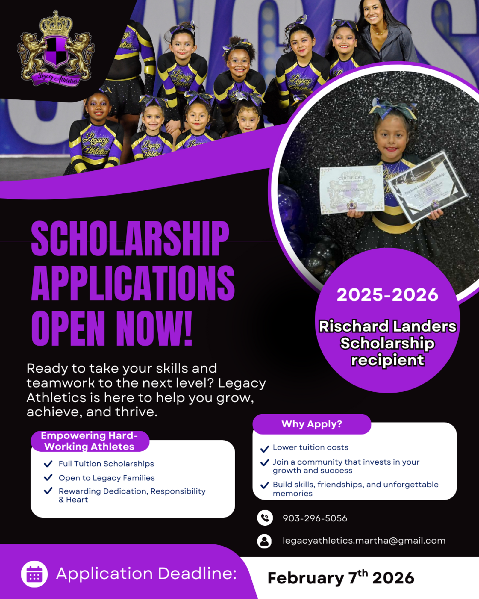 Scholarship Contact: Martha Perez (Personal Cell): 903-806-3739
